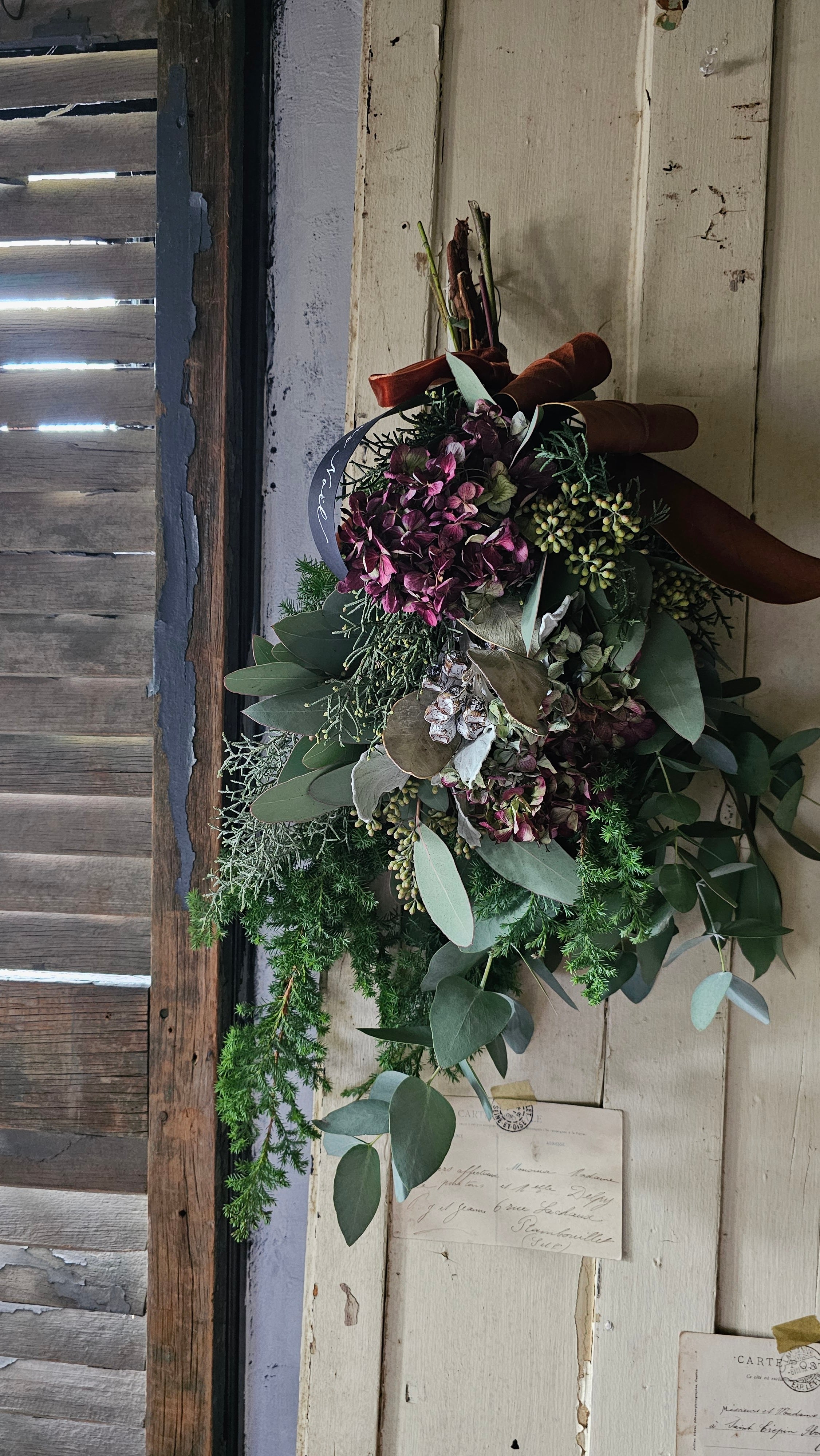 ノエルも文字を描いて頂いたタグを付けています。アジサイなやユーカリを使っているので