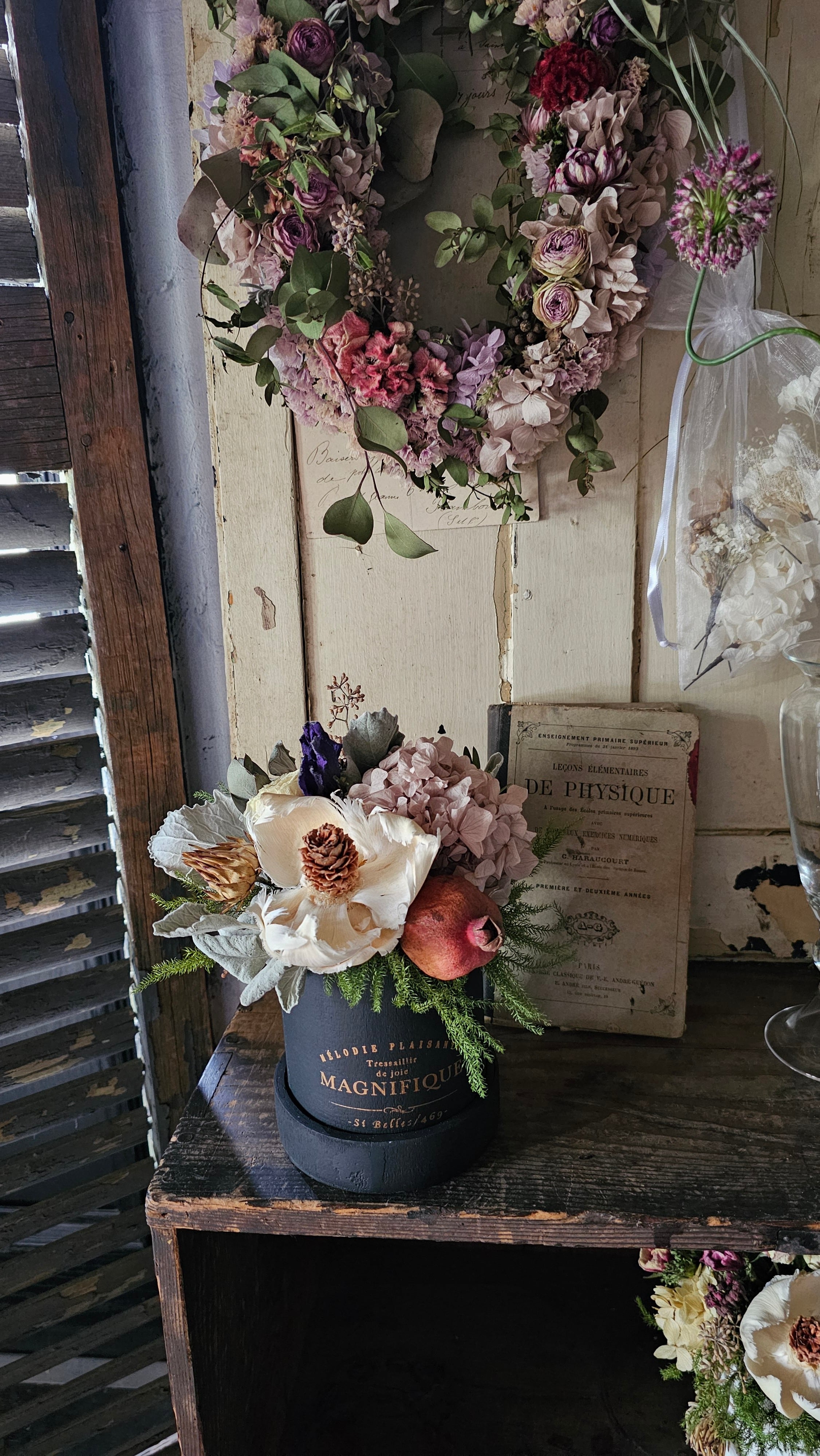 すべてドライフラワーとプリザーブドフラワーで作っているので長くお楽しみいただけます。