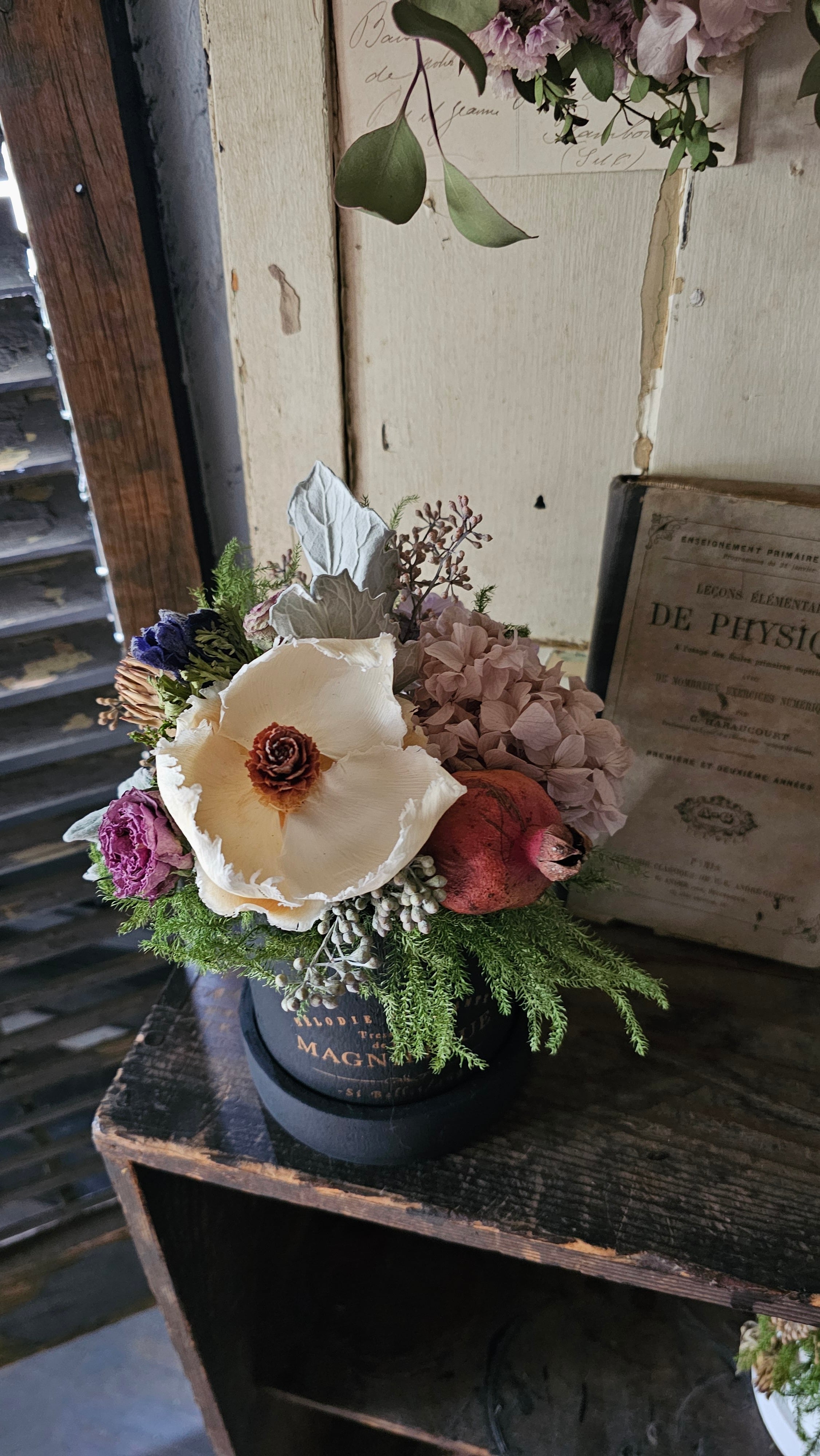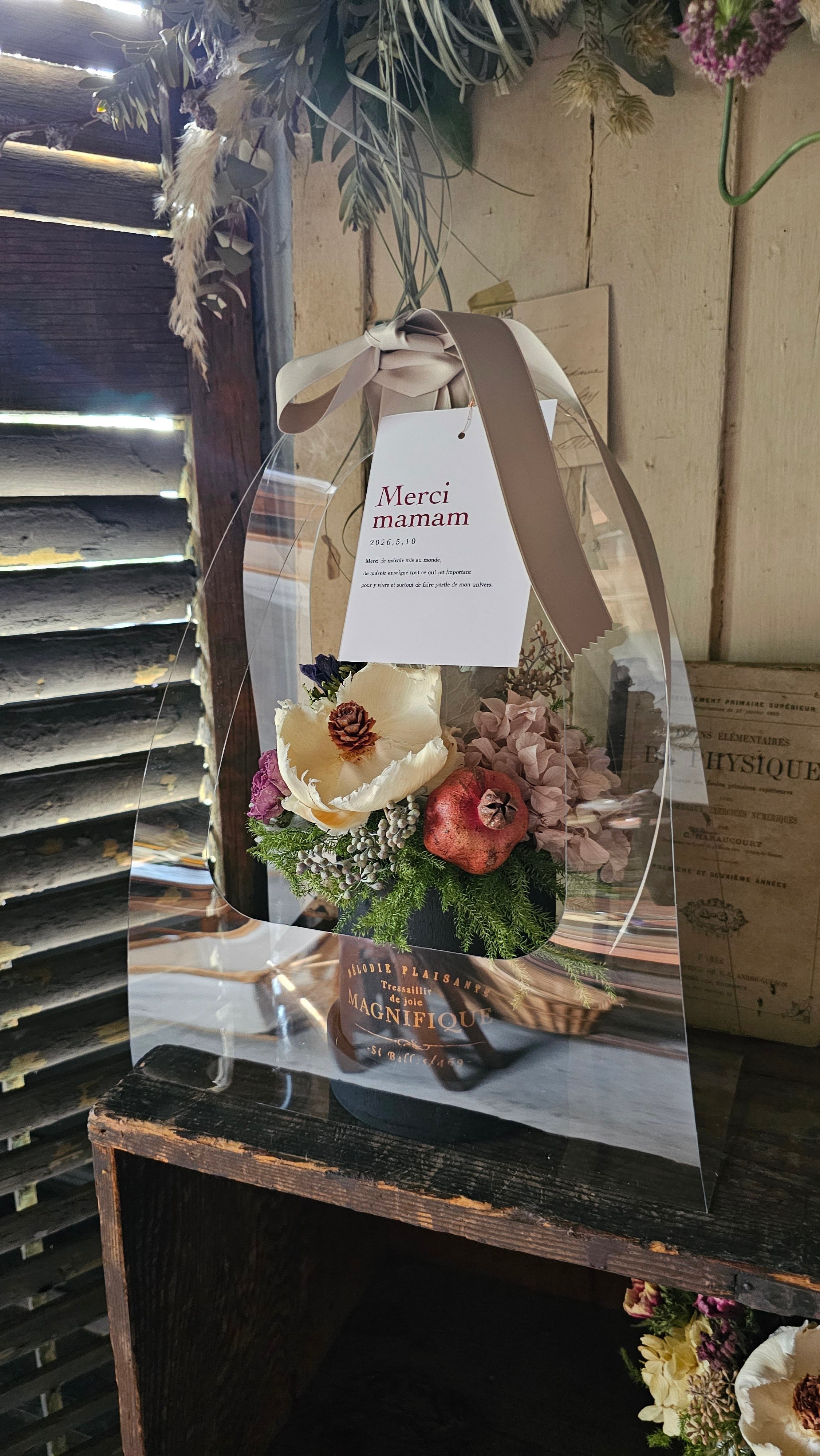 すべてドライフラワーとプリザーブドフラワーで作っているので長くお楽しみいただけます。